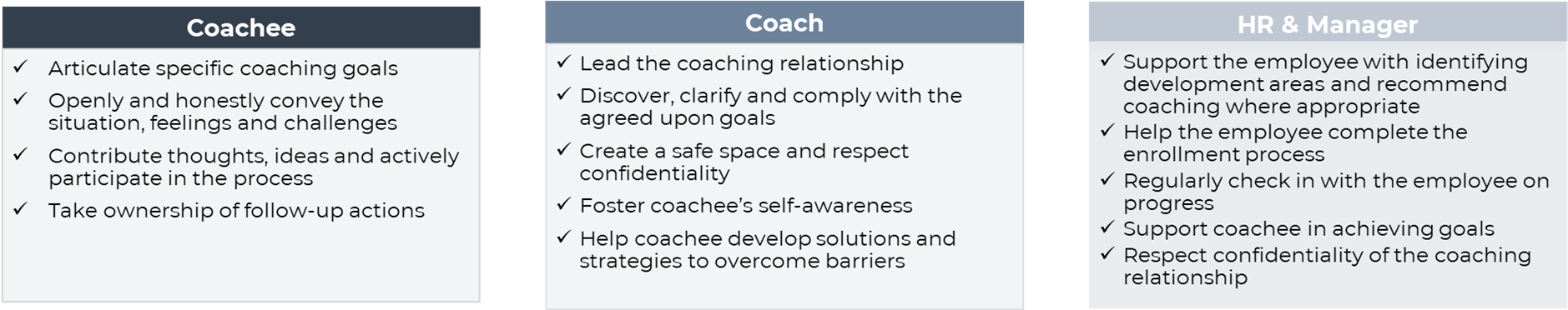 Coaching is a unique development experience, and outcomes are highly dependent on your mindset and level of engagement.